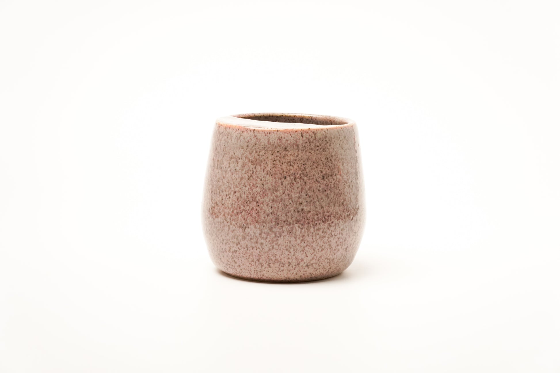 Taza hecha en el torno alfarero en barro gres pecoso quemado, con un hermoso efecto de esmaltado colorido.