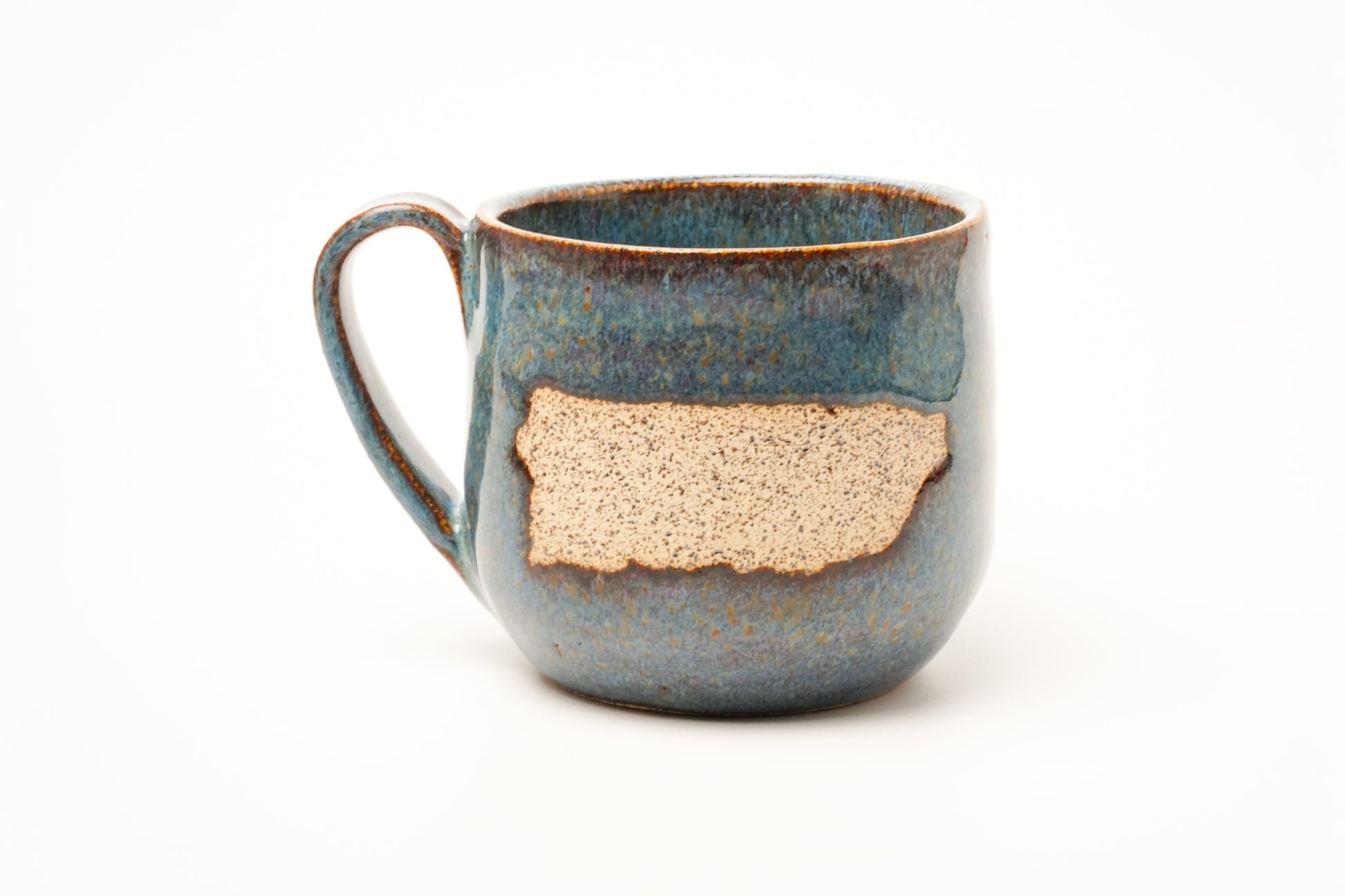 Wheel thrown coffee cup made on speckled tan stoneware clay.
