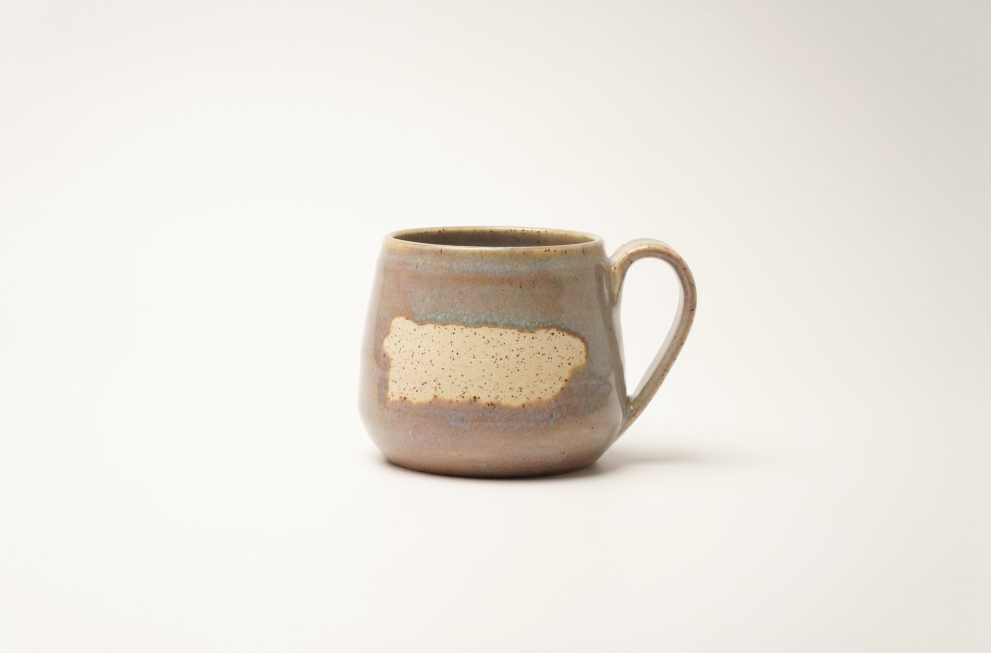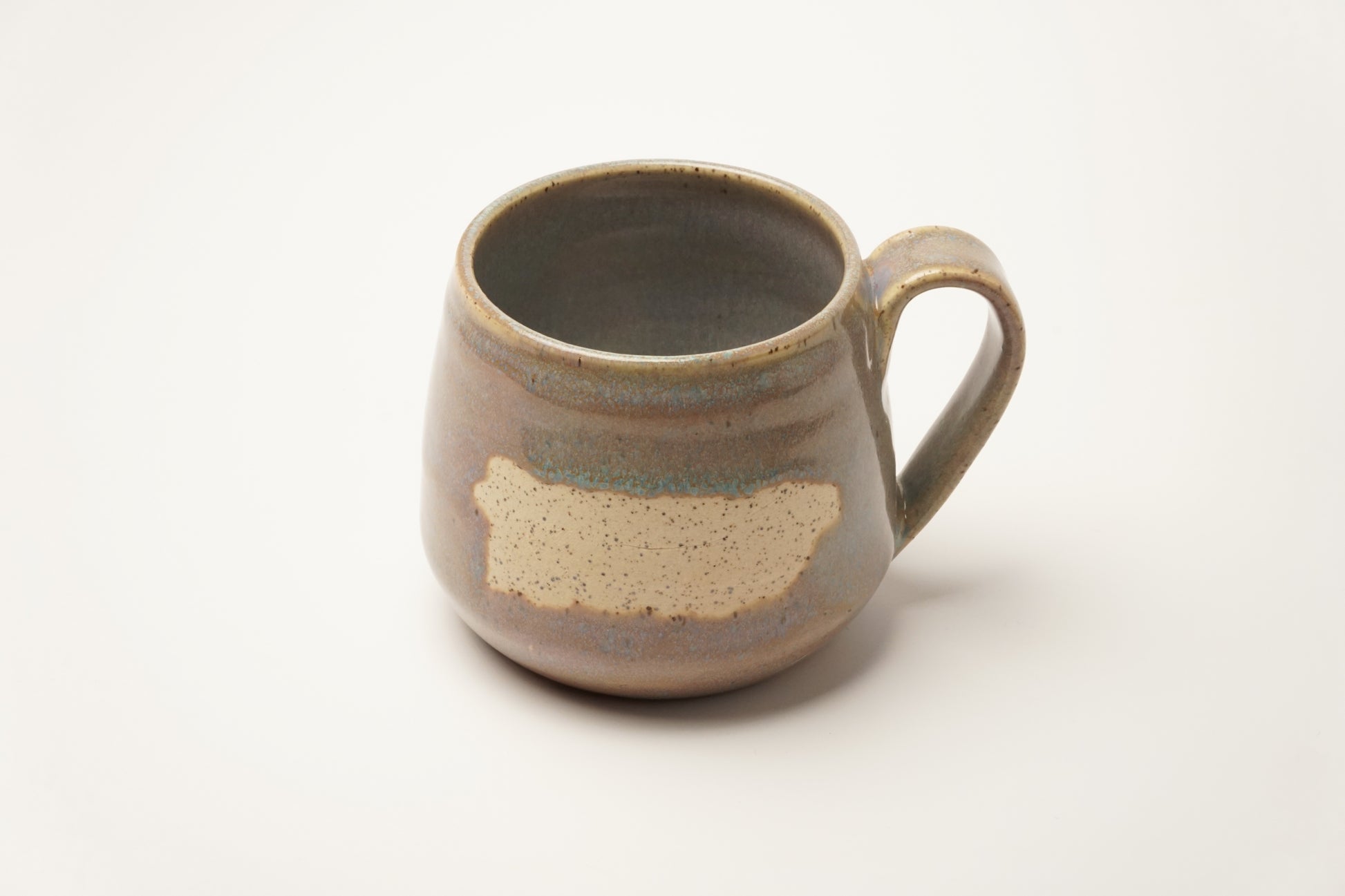 Wheel thrown coffee cup made on speckled tan stoneware clay.
