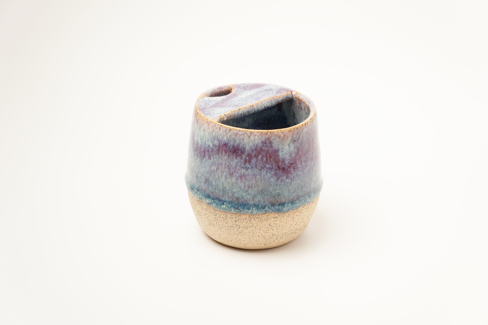 Wheel thrown To go cup in a tan speckled stoneware clay.